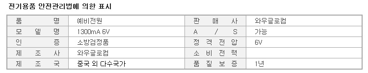 ¿Í¿ì±Û·ÎÄÄ-¹åµ¥¸®1300mA-6V-À¯µµµî-Çdz±¸-¿¹ºñÀü¿ø_540678